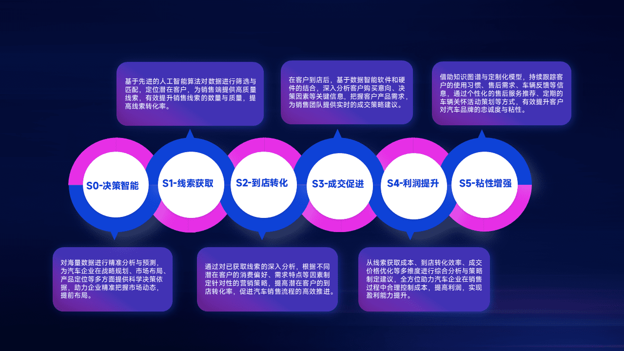 通过拓宽潜在客户来源、、、优化线索分配并提高到店转化率,,,以增强销售效率。。同时,,,,利用线索数据不断优化分析模型,,有效提升转化率,,,,扩大营销影响力。。。。